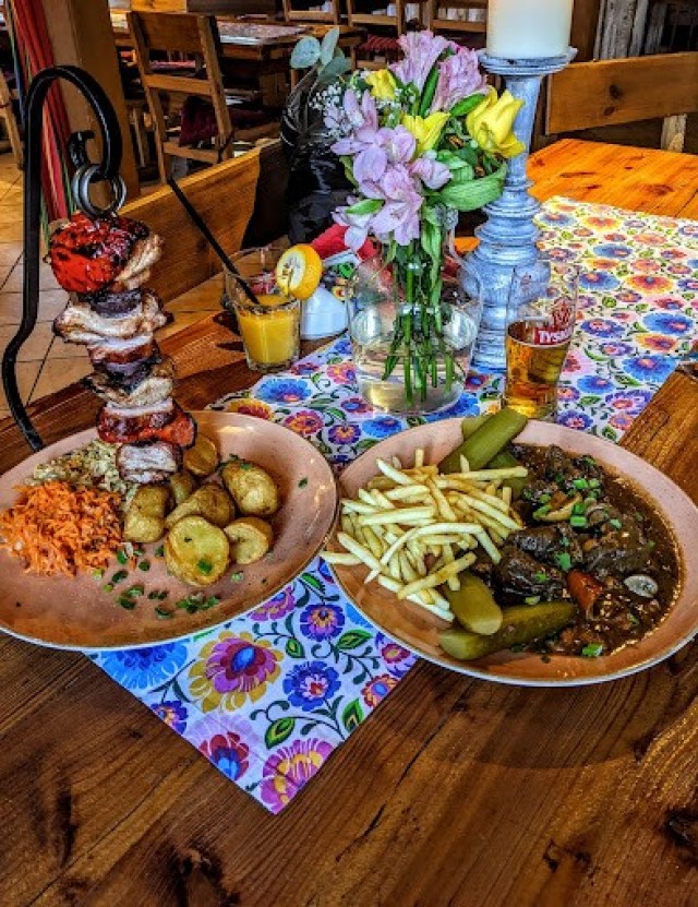 Karczma Solna oferuje gościom dania przygotowywane z regionalnych produktów, w dużym stopniu występujących sezonowo. Potrawy przyrządzane są według tradycyjnych receptur. W restauracji można także skosztować także regionalnych nalewek oraz warzonych na miejscu piw.